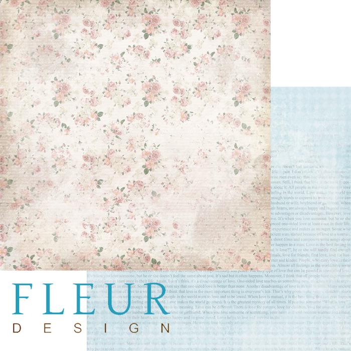 Двусторонняя бумага с изображением нежных букетов цветов на бежевом фоне - с одной стороны, а с другой стороны - текст на английском языке на голубом фоне.